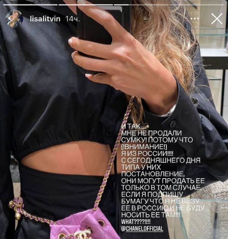 Россияне, которым все-таки продают вещи в Chanel, должны подписать бумагу с гарантией, что они не живут в России и не станут носить эти вещи на улицах российских городов. Только при таких обстоятельствах товар продадут. Интернет-пользователи призывают замьютить Chanel. Якобы бренд ведет себя неэтично.