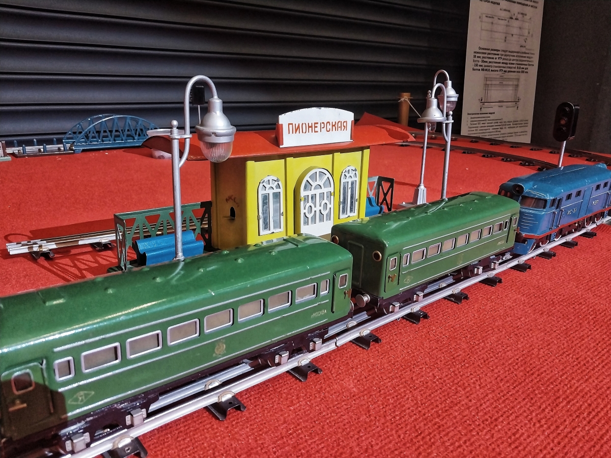 Еще один интересный экспонат — знаменитая «Пионерская железная дорога». В 1951 году завод «Москабель» освоил серийное производство набора «Электрическая железная дорога» в масштабе 1:45. Такой набор до 1970-го поставлялся во Дворцы пионеров, в школы и кружки на детских железных дорогах, поэтому и стал «пионерским». На модели вокзала тоже написано «Пионерская». А сейчас, кстати, в Подмосковье есть своя настоящая одноименная станция — конечная Московской детской железной дороги, которая проходит по границе между Жуковским и Кратово.