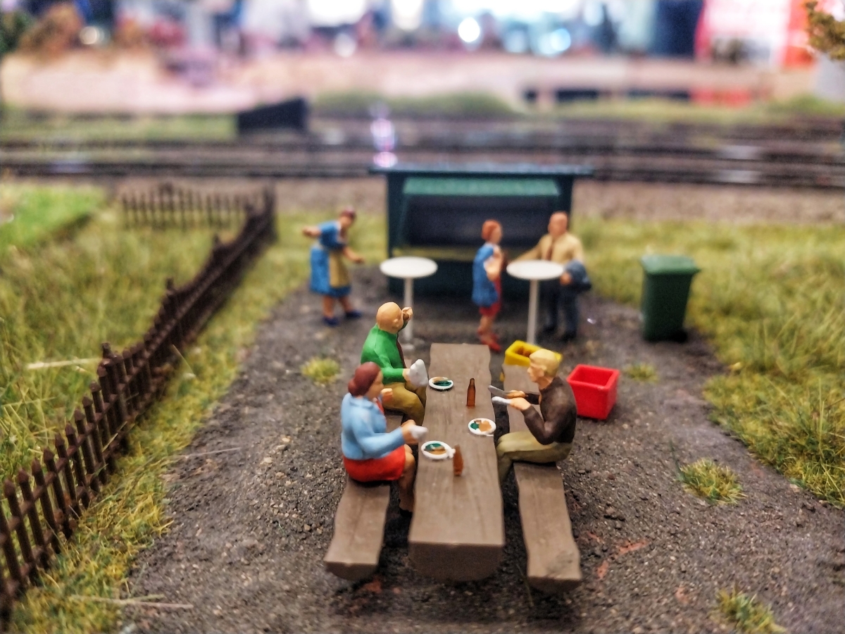 В центре внимания традиционно оказывается один из крупнейших в России действующих железнодорожных макетов, собранный на площади более 200 квадратных метров. Макет настоящего ж/д узла в типоразмере Н0 (1:87) с цифровым управлением объединяет свыше ста сборных модулей. Грузовые и пассажирские поезда следуют точно по расписанию по живописным просторам России, по маленьким городкам с оживленными станциями, вдоль гаражей с надписями «Цой жив» и «Все идет по плану», мимо арбузных полей... На макете обустроены не только станции, поезда и мгновения окружающего мира, но и светофоры, автомобильные переезды, городские фонари. Когда уже не первый раз посещаешь выставку «Железнодорожная модель», создается ощущение, будто возвращаешься в знакомые места. Хотя наверняка все, кто хоть раз путешествовал на поезде и смотрел в окно, почувствуют примерно то же самое.