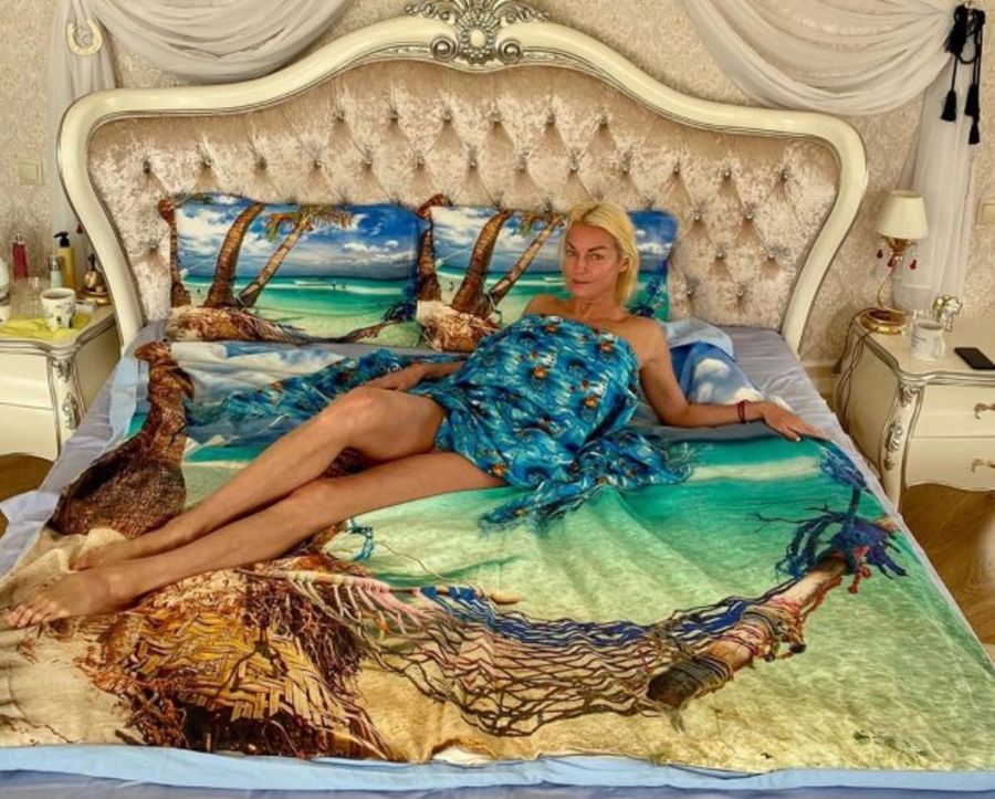 Судя по всему, Волочкова хвастается удачной покупкой. У артистки новое постельное белье. Тут есть все, что любит артистка — море, пальмы, гамак и прочее. Теперь в постели у Волочковой вечное лето.
