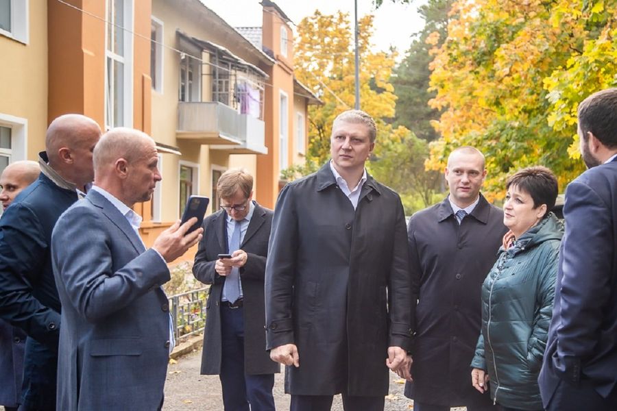 Качество ремонта фасада жилого дома №9 в Горках-2 проверил Андрей Иванов вместе с жителями