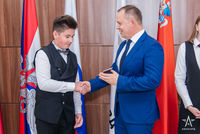 Из них получилась мозаика с названием страны, Алешей и гербом государства