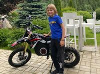 Первоклассник ездит на кроссовом мотоцикле