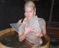 На очередной фотографии в купели заметны все недостатки фигуры балерины